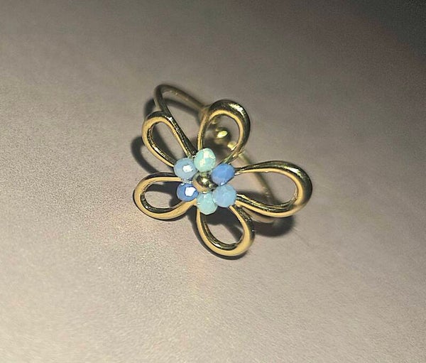 Ring flower blue- Stainlesssteel- Verstelbaar