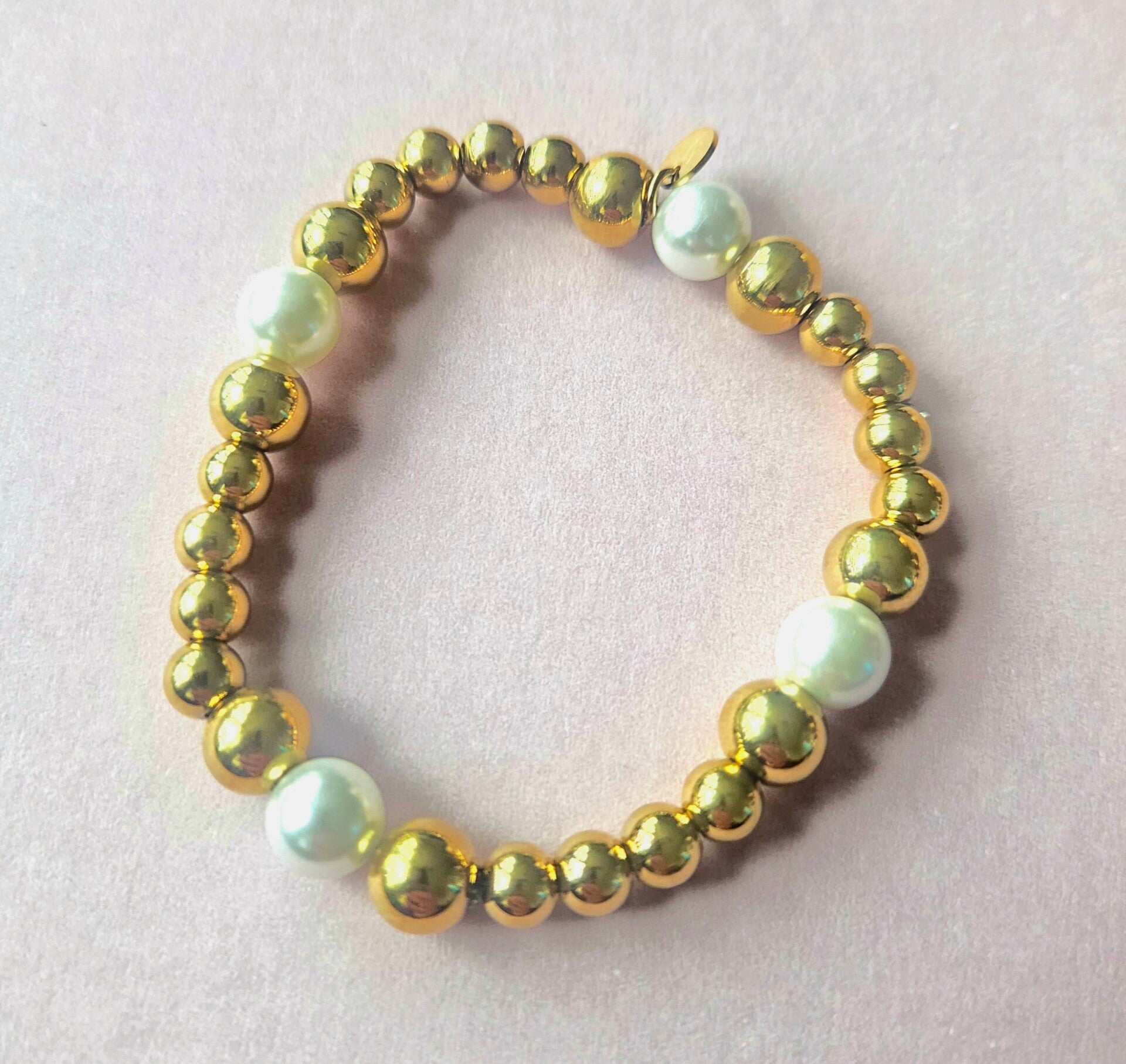 Armband stretch met natuursteen en van stainlesssteel.