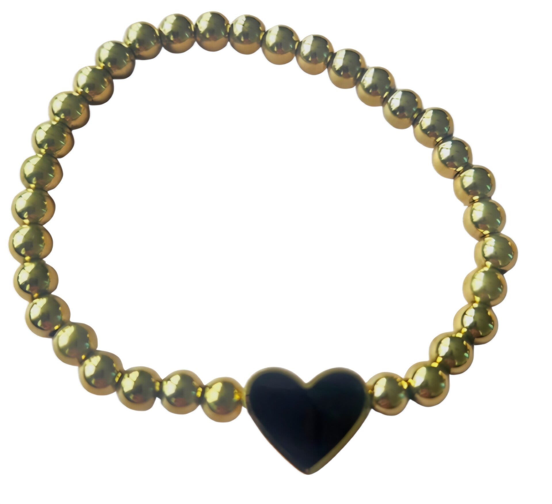 Armband met hartje zwart van stainlesssteel- balletjes armband- stretch - goud.