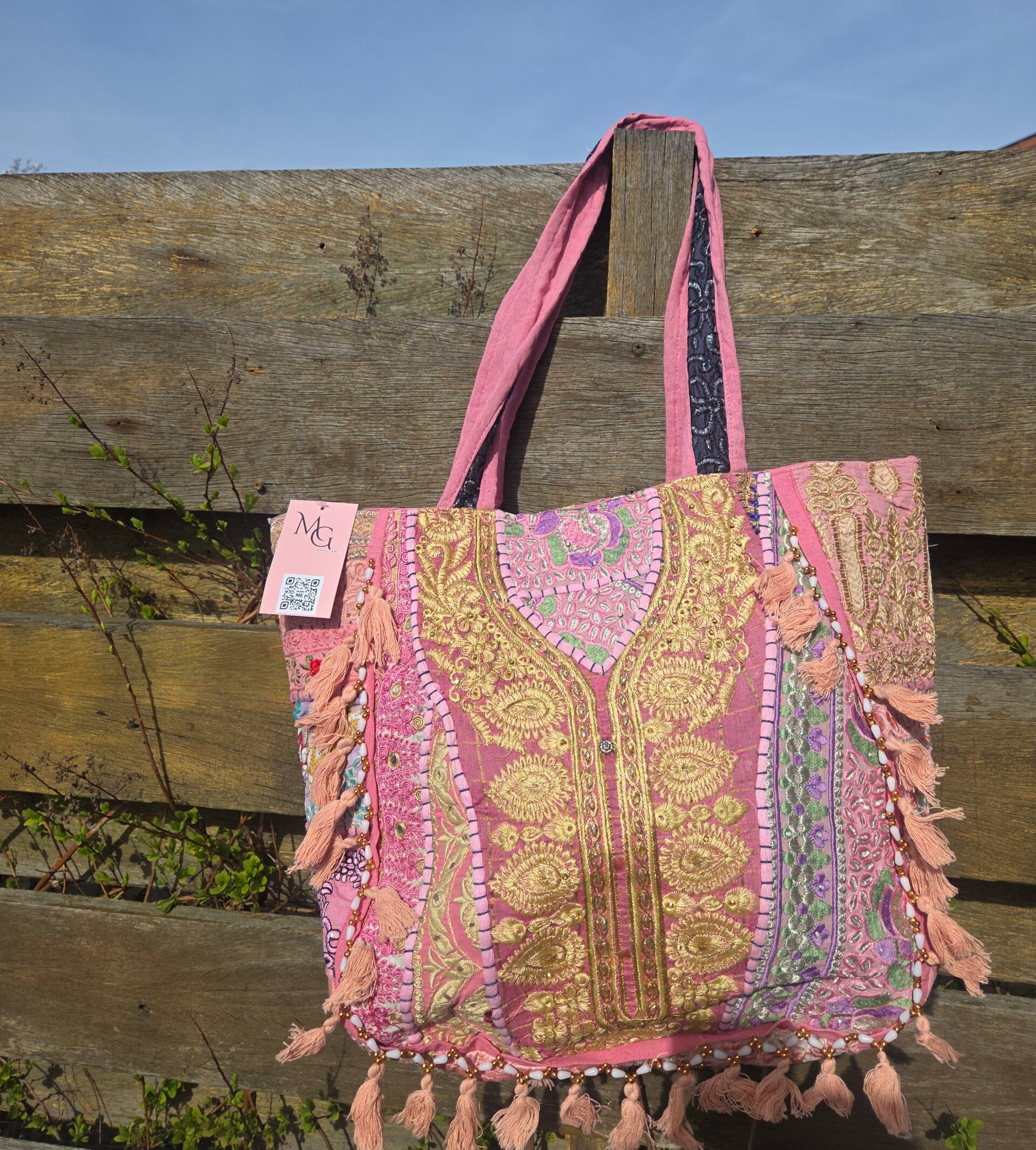 Ibiza Tassen met Rits – Handgemaakt & Uniek roze groot