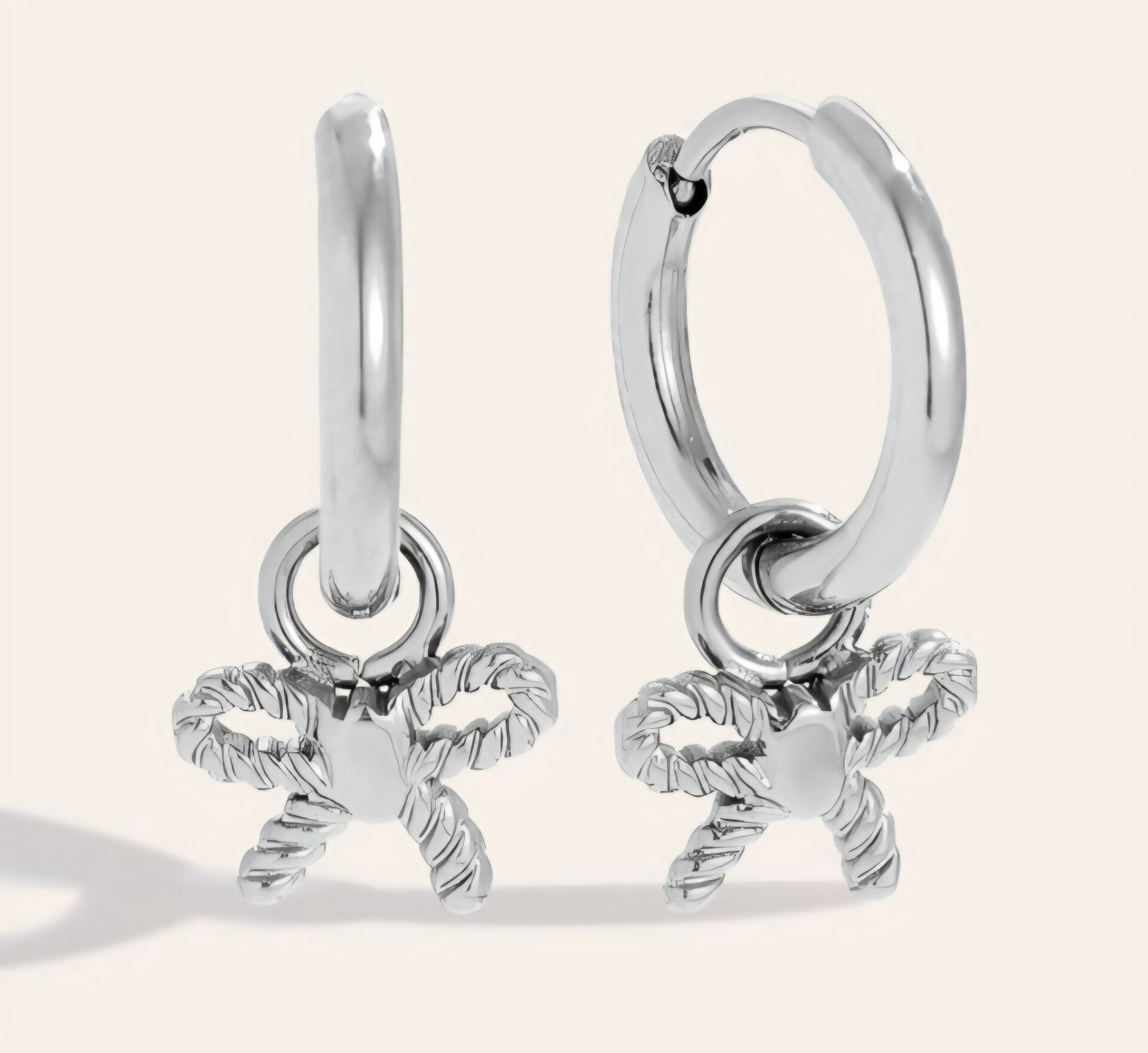 Oorbellen strikjes twist- 2cm - zilverkleurig.
