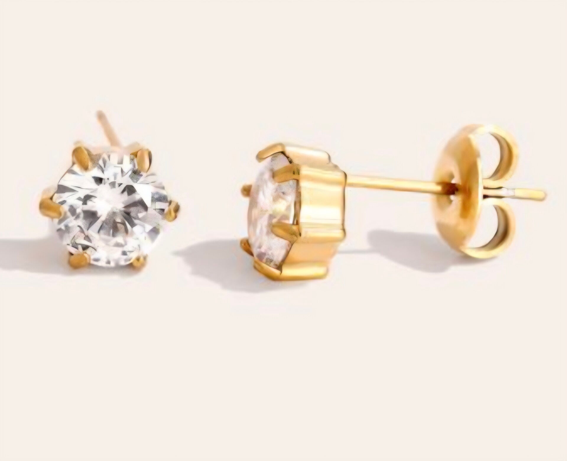 Oorbellen studs met strassteen. Goudkleurig. 6mm.
