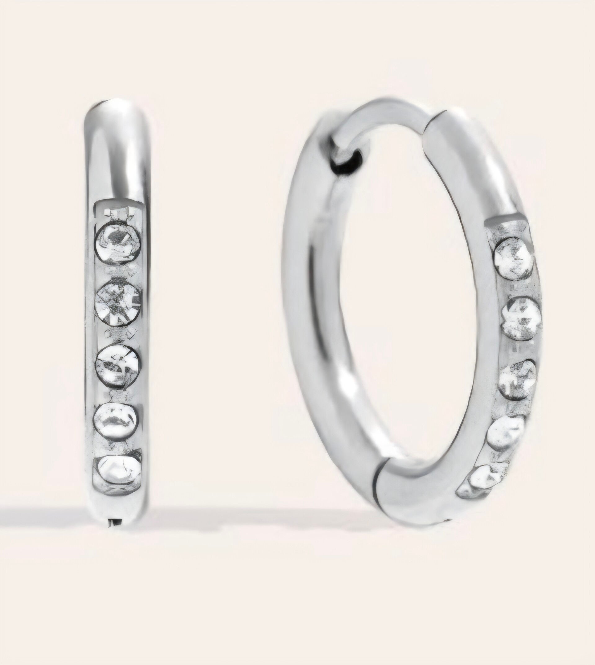 Oorbellen hoop dicht 10 mm met strassteentjes. Zilverkleurig.
