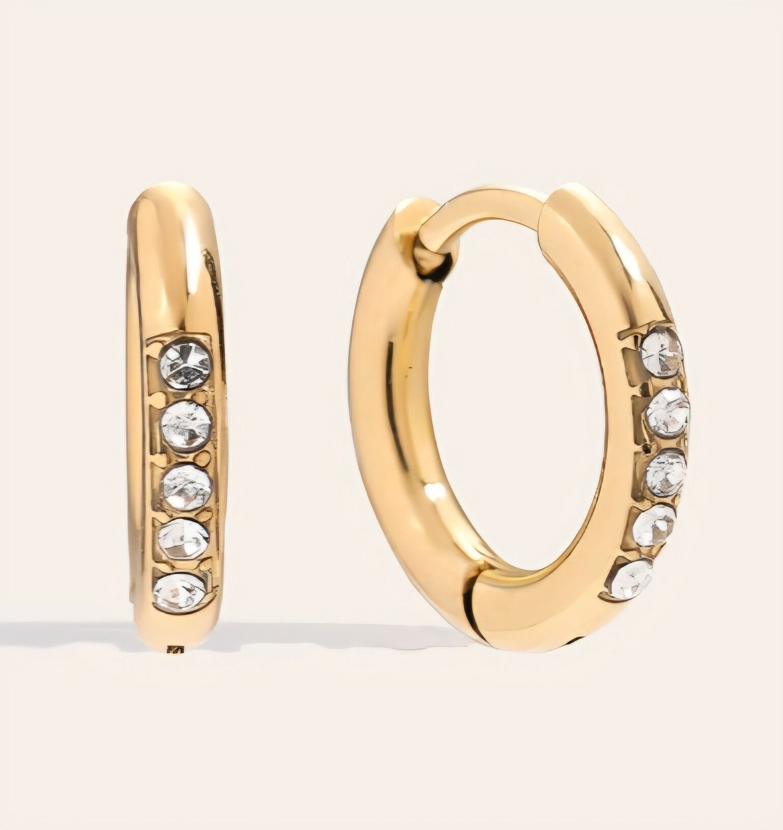 Oorbellen hoop- 8mm- goud met strassteentjes.