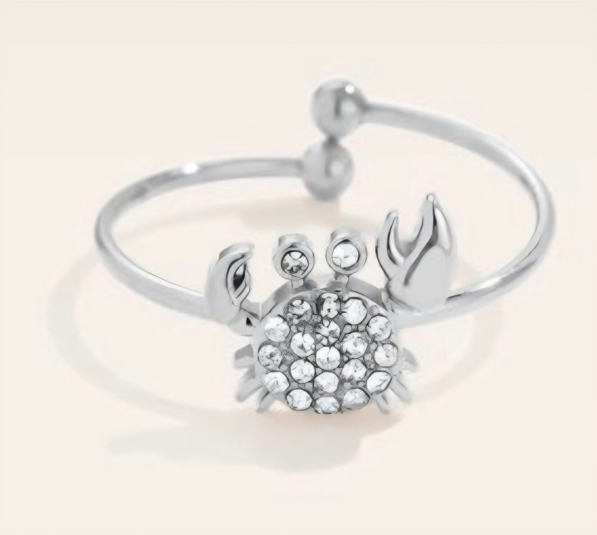 Ring krab strassteentjes- verstelbaar- Stainlesssteel- zilverkleurig.